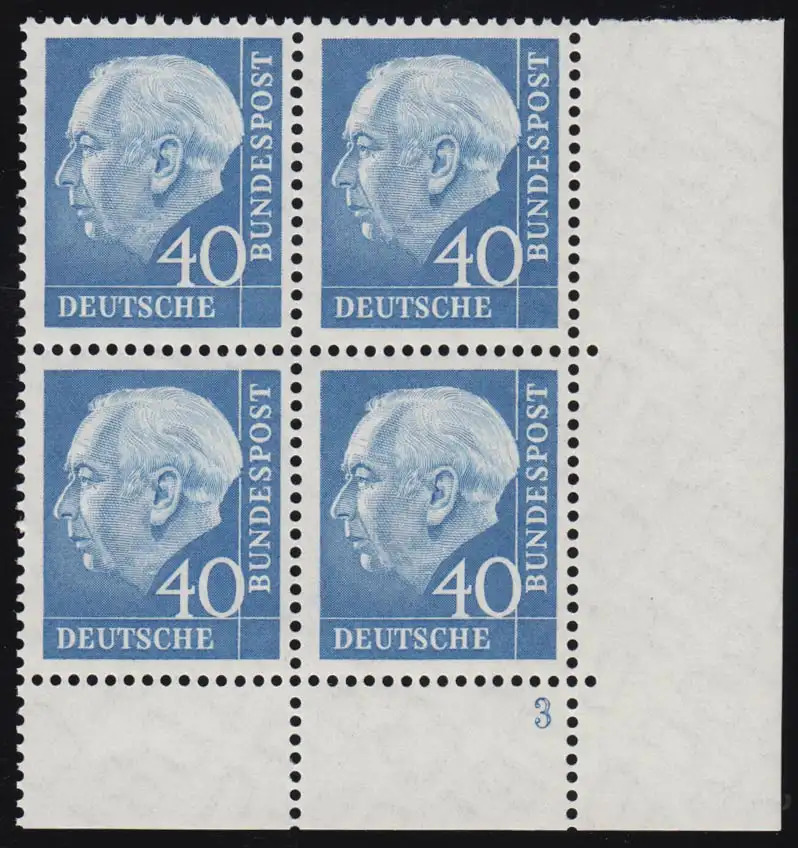 260v Heuss II 40 Pf Eck-Vbl. ur mit Formnummer FN 3, postfrisch **