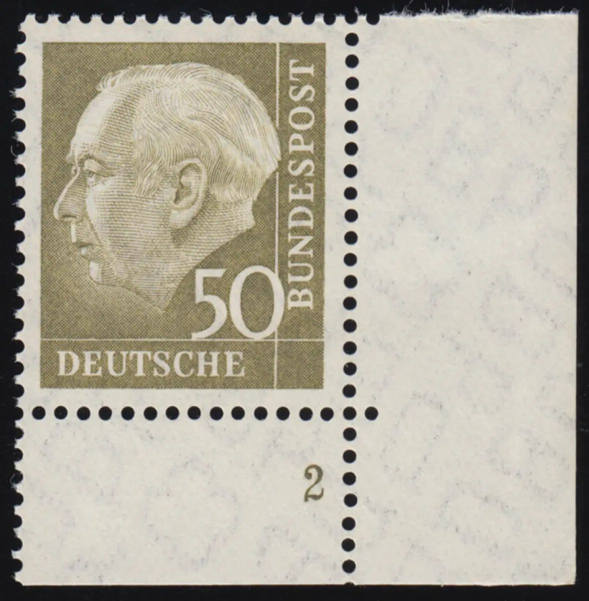 261w Heuss II 50 Pf Ecke ur mit Formnummer FN 2, postfrisch **