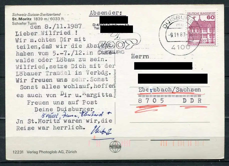 (2633) St Moritz Schiefer Turm Schweiz - gelaufen 1987