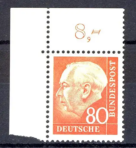 264w Heuss II 80 Pf Ecke ol ** postfrisch