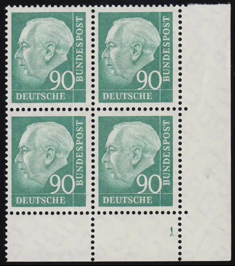 265v Heuss II 90 Pf Eck-Vbl. ur Formnummer FN 1, postfrisch **