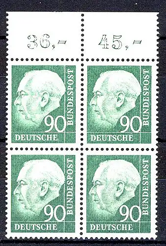 265v Heuss II 90 Pf OR-Viererbl. ** postfrisch
