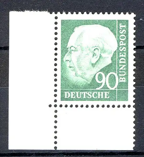 265w Heuss II 90 Pf Ecke ul ** postfrisch