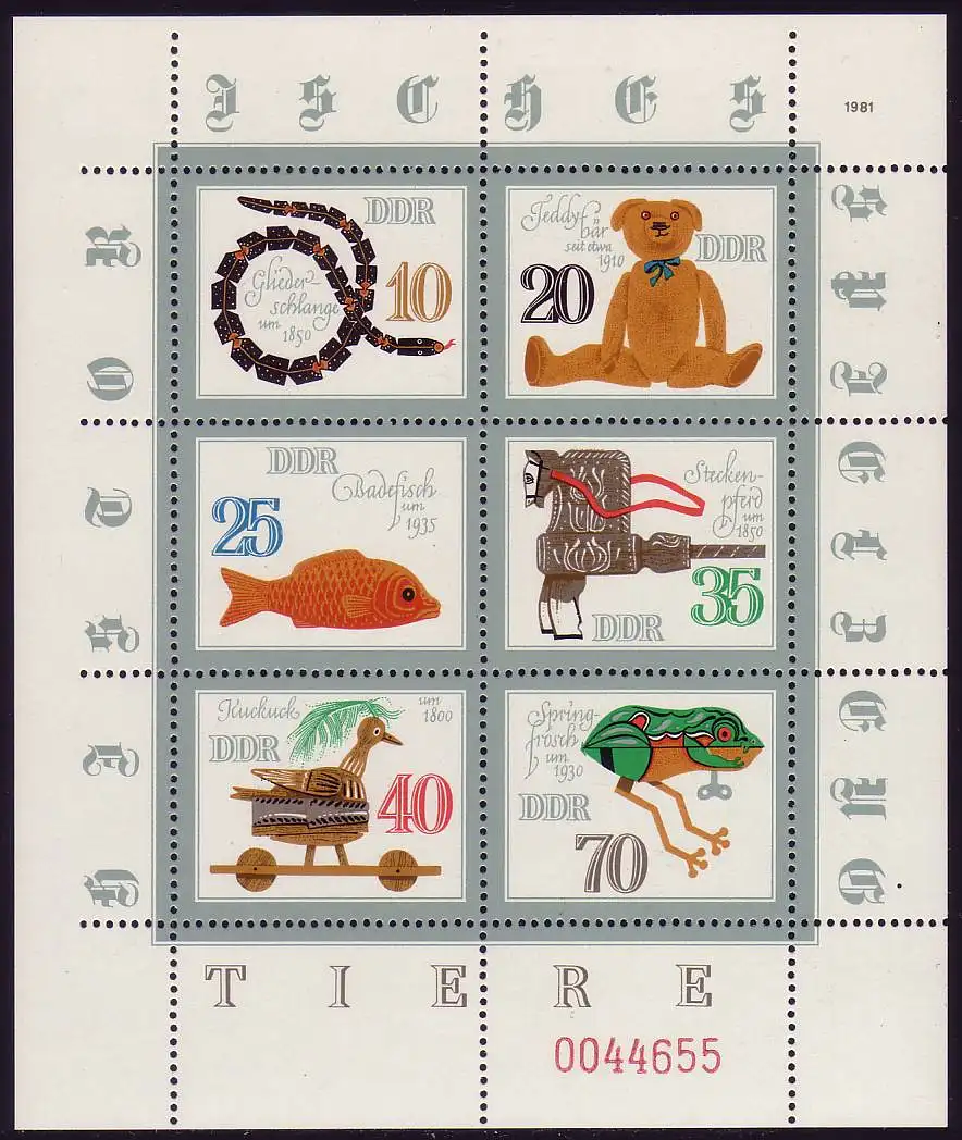 2661-2666 Spielzeug-Kleinbogen: links und oben nicht durchgezähnt, LZ 10, **