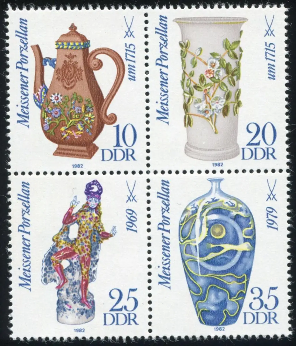 2667-2670 Porzellan 1982 - Zusammendruck mit PLF 2668 weißer Fleck, Feld 30 **