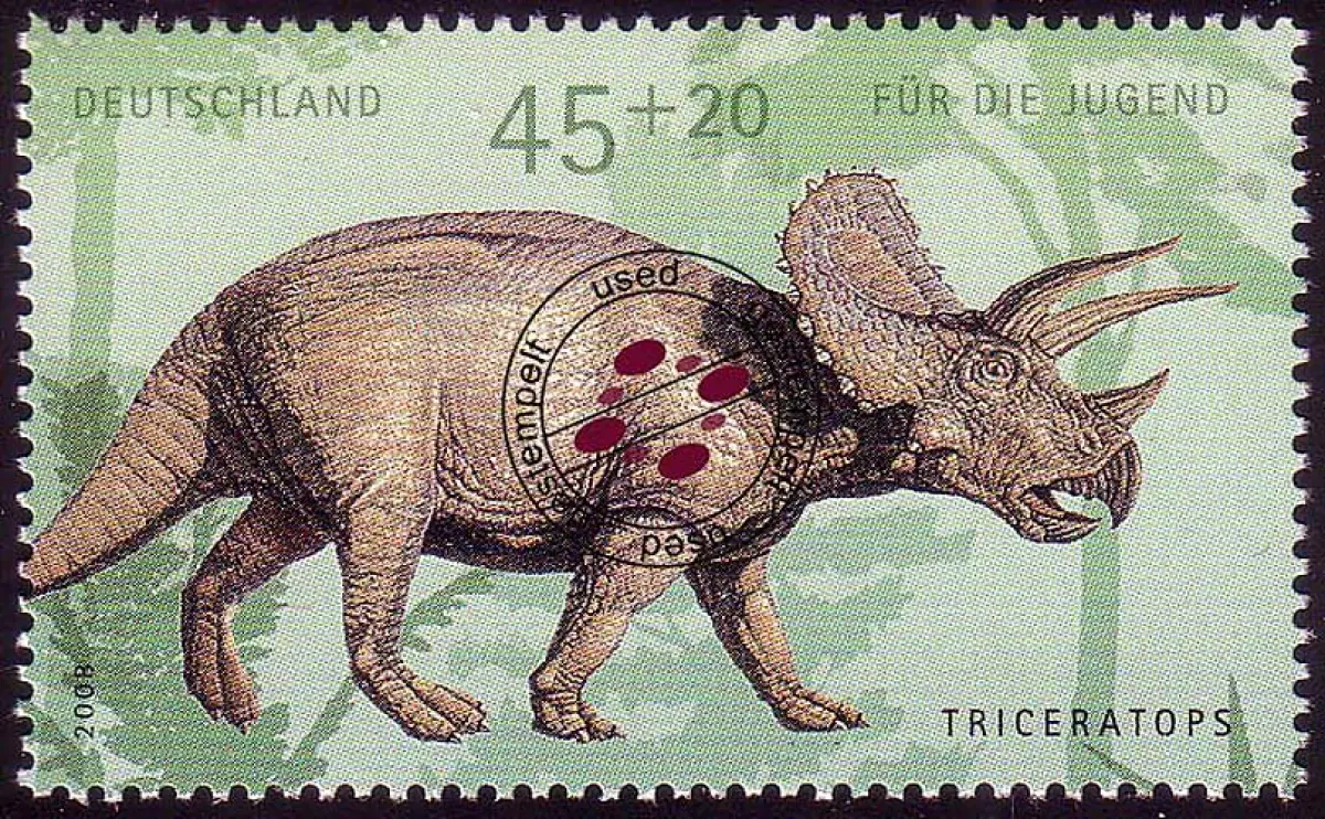 2687 Dinosaurier 45+20 C Triceratops aus Block 73, gestempelt O