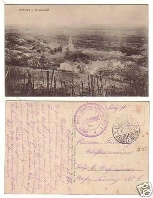 Buxieres Totalansicht, gelaufen mit Feldpoststempel der Bayerischen Fest.- Luftschiffertruppe Nr.1, guter Zustand (gering fleckig) siehe Bild,