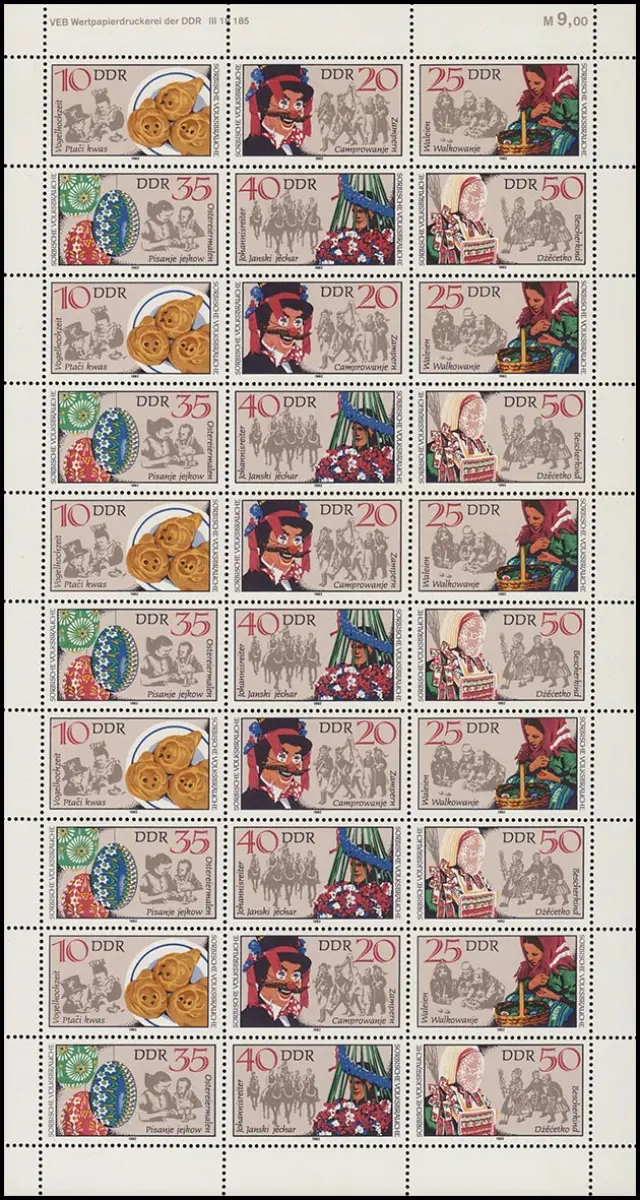 2716-2721 Sorben - Sorbische Volksbräuche 1982, ZD-Bogen unten dgz., **