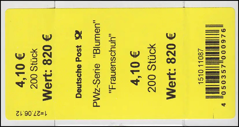 2768 Frauenschuh 410 Banderole / Aufkleber, Angabe Stück