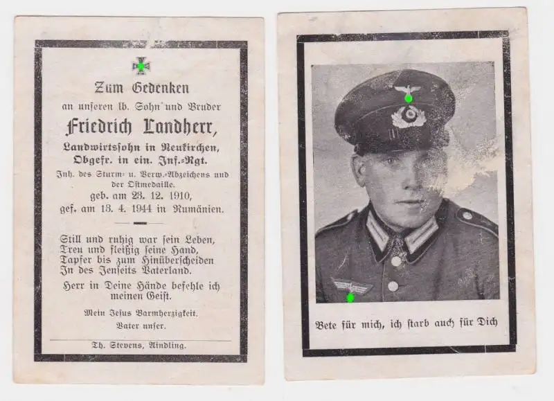 27703 Sterbebild WK2 Obergefreiter Infanterie-Regiment gefallen in Rum?nien 1944