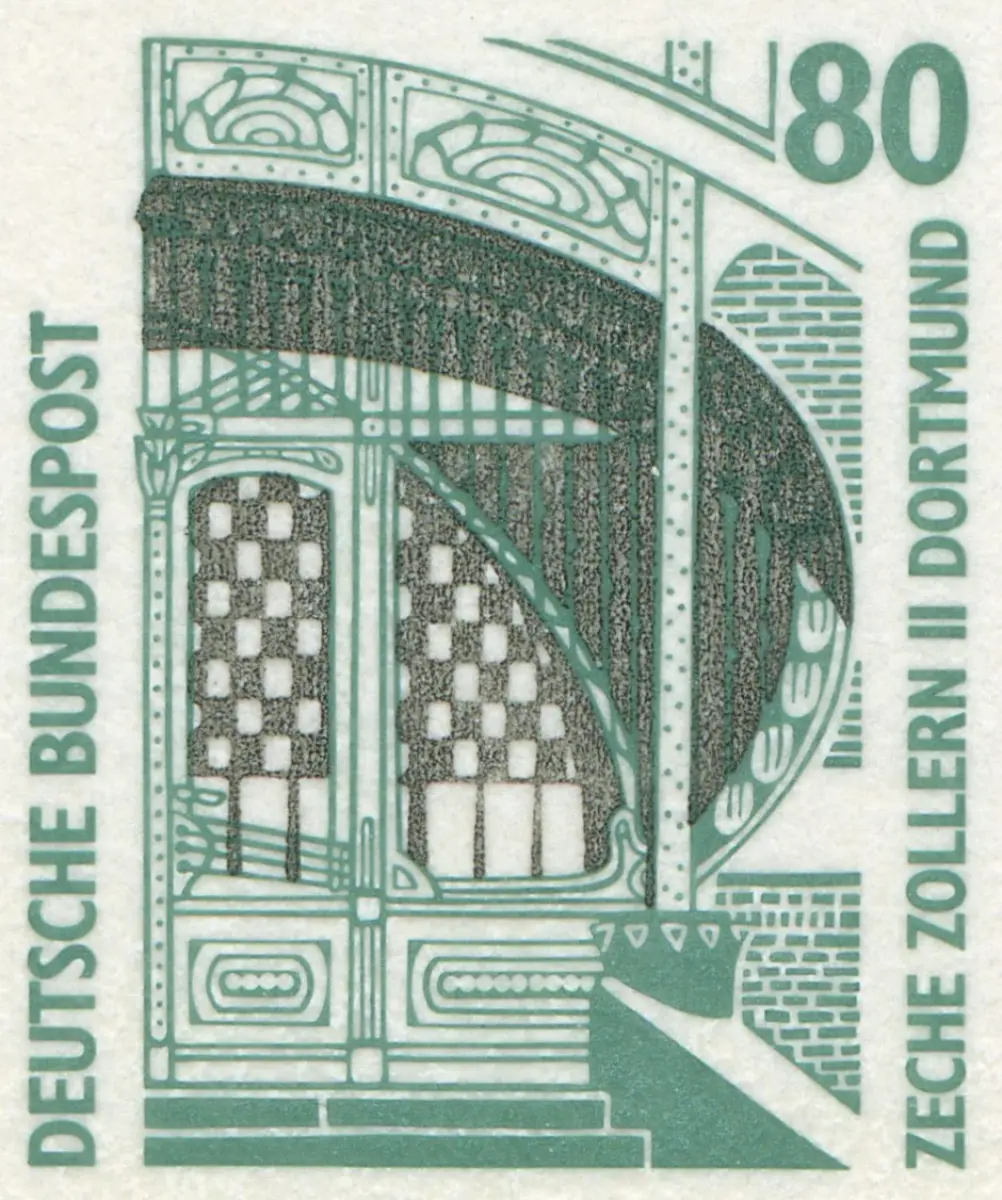 mit dunklerem, verlaufenen Druck der Farbe grau (schwarzgrau) auf den Feldern 3 und 7 (80-Pf-Marken)