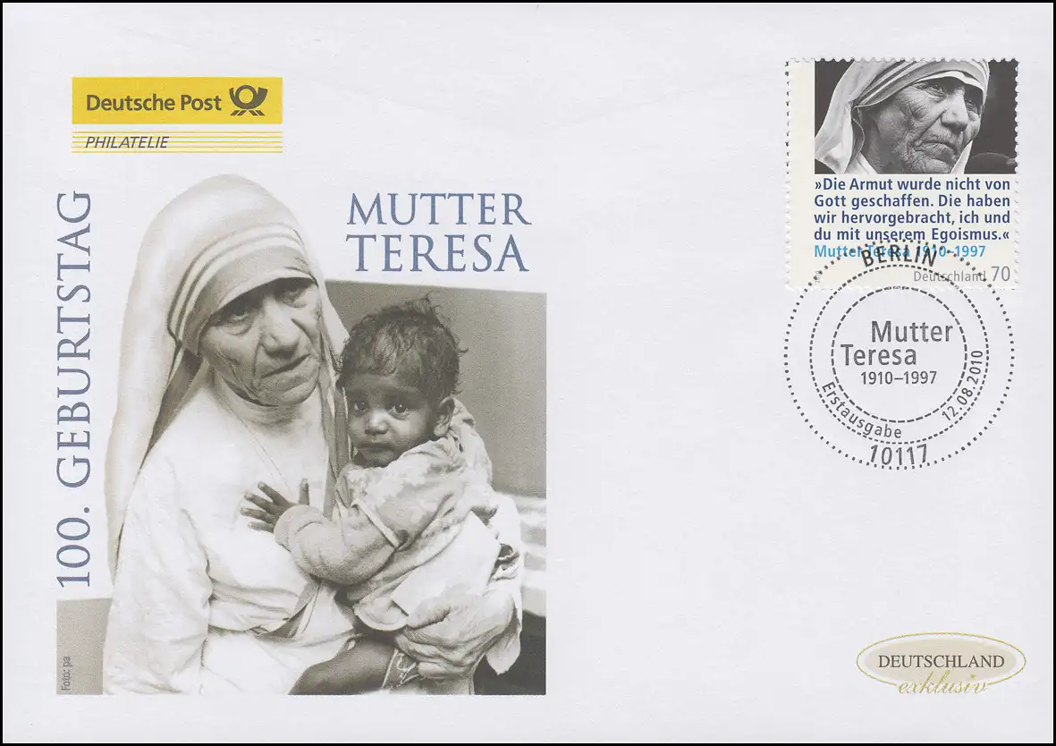 2813 Mutter Teresa, Schmuck-FDC Deutschland exklusiv