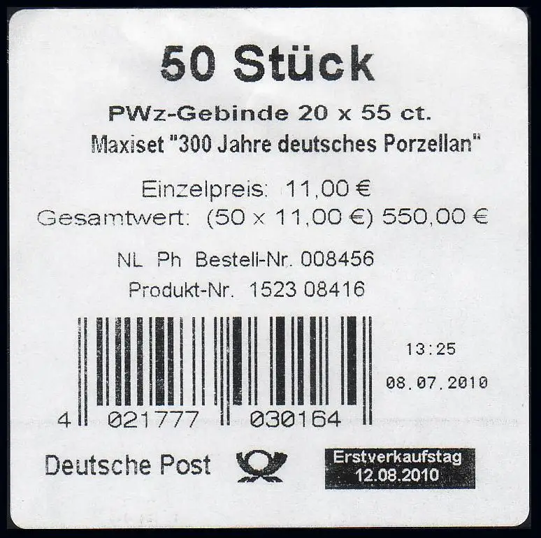 2816 Porzellan/selbstklebend, BANDEROLE für 50 Folienblätter 11, Type III