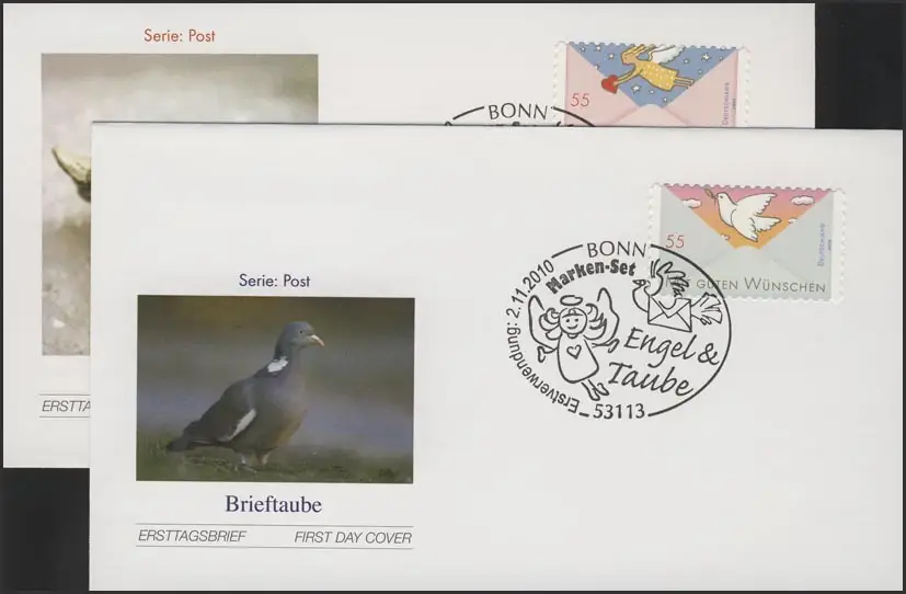 2827-2828 Grußmarken aus FB 12, SELBSTKLEBEND, Satz auf 2 FDC EV-O Bonn
