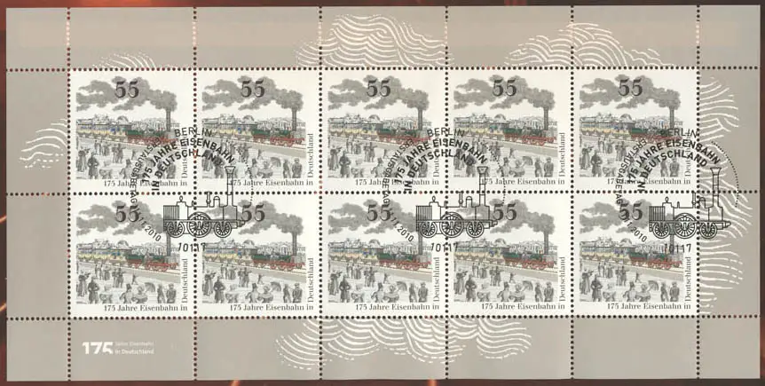 2833 Eisenbahn in Deutschland Dampflok ADLER - 10er-Bogen auf Kartonvorlage ESST