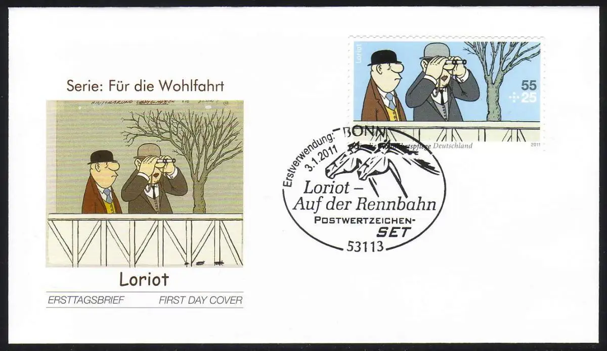 2843 Loriot Rennbahn aus MH 83, FDC Erstverwendungsstempel Bonn 03.01.2011