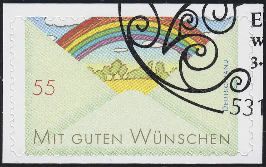 2849 Grußmarke Regenbogen SELBSTKLEBEND auf neutraler Folie, gestempelt O