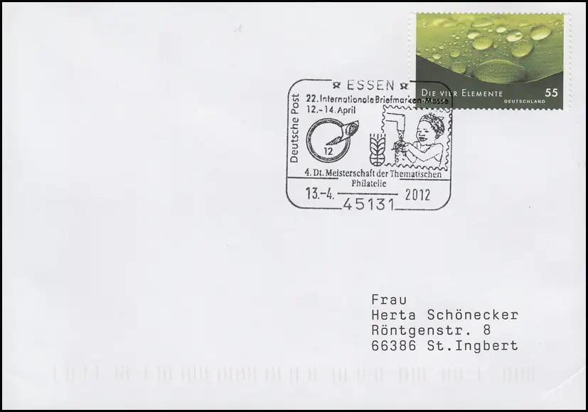 2852 Element Wasser, EF Brief SSt Essen Kind trinkt Wasser 13.4.2012