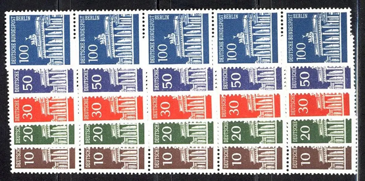 286-290 Brandenburger Tor, 5er-Streifen mit Nummer, Satz postfrisch **