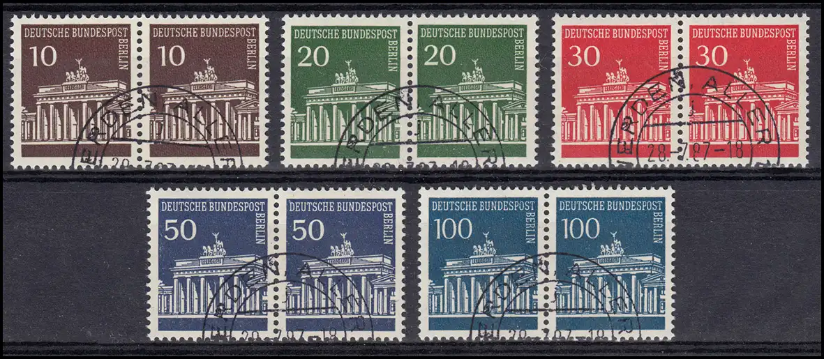 286-290 Brandenburger Tor, Satz als waagerechte Paare, saubere Ortsstempel O
