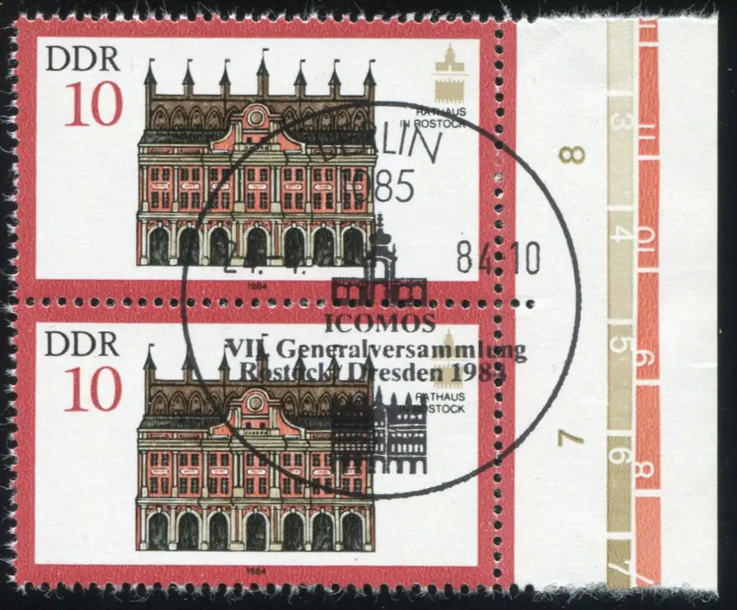 senkrechtes Randpaar mit Ersttagssonderstempel Berlin ICOMOS-Generalversammlung 24.4.1984