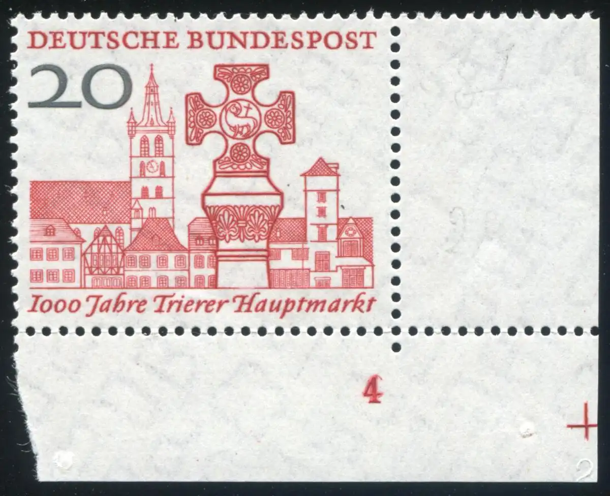 290 Trier: Ecke mit FN 4 und Plattennr. 2 (blind) ganz rechts unten, gefaltet **