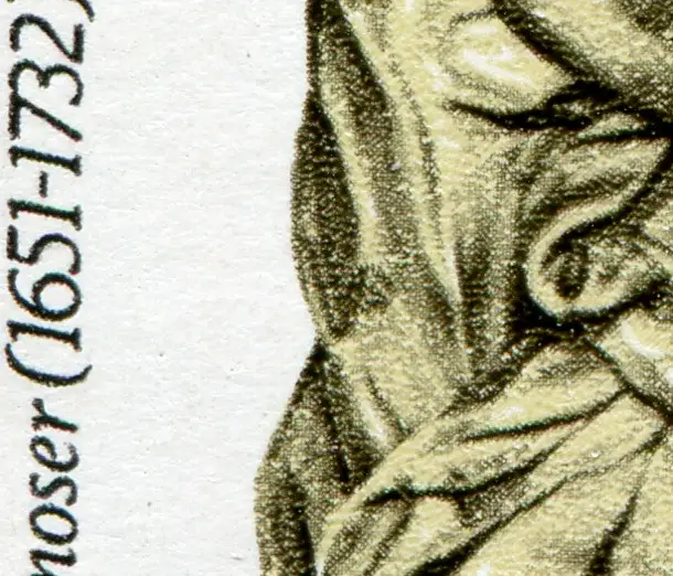 Plattenfehler: dunkler Fleck links im Umhang neben der 6 von 1651, postfrisch