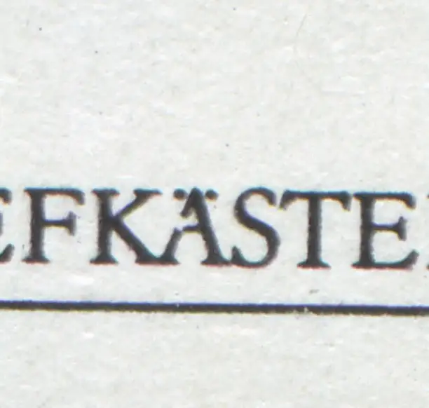 Zusammendruck mit Plattenfehler: Anstrich des Ä in BRIEFKÄSTEN gebrochen