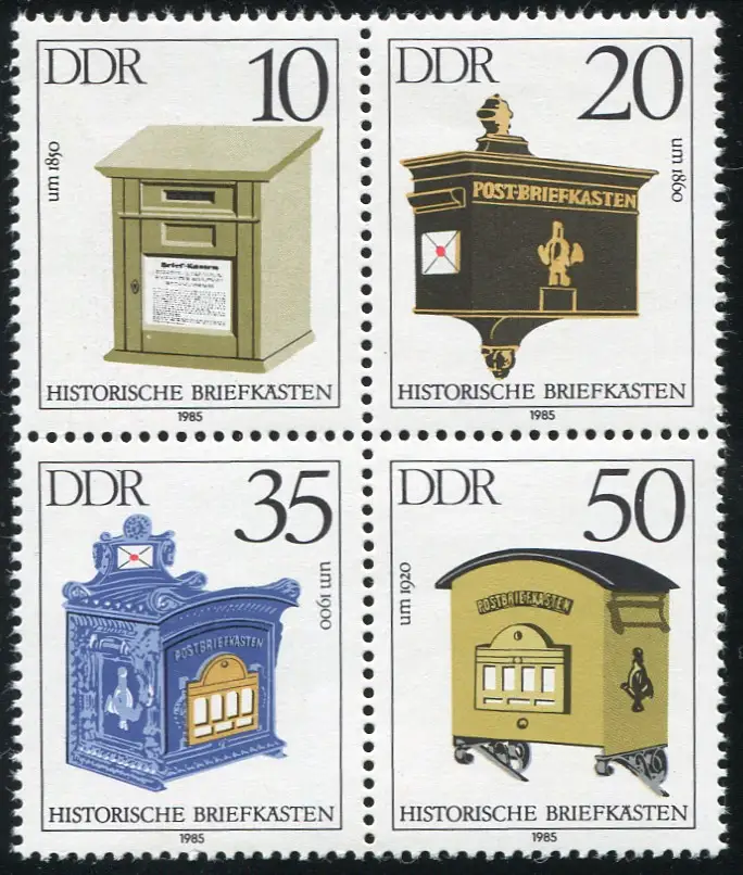 2924-2927 Briefkästen-Viererblock mit PLF 2925: gebrochenes Ä, Feld 8 **