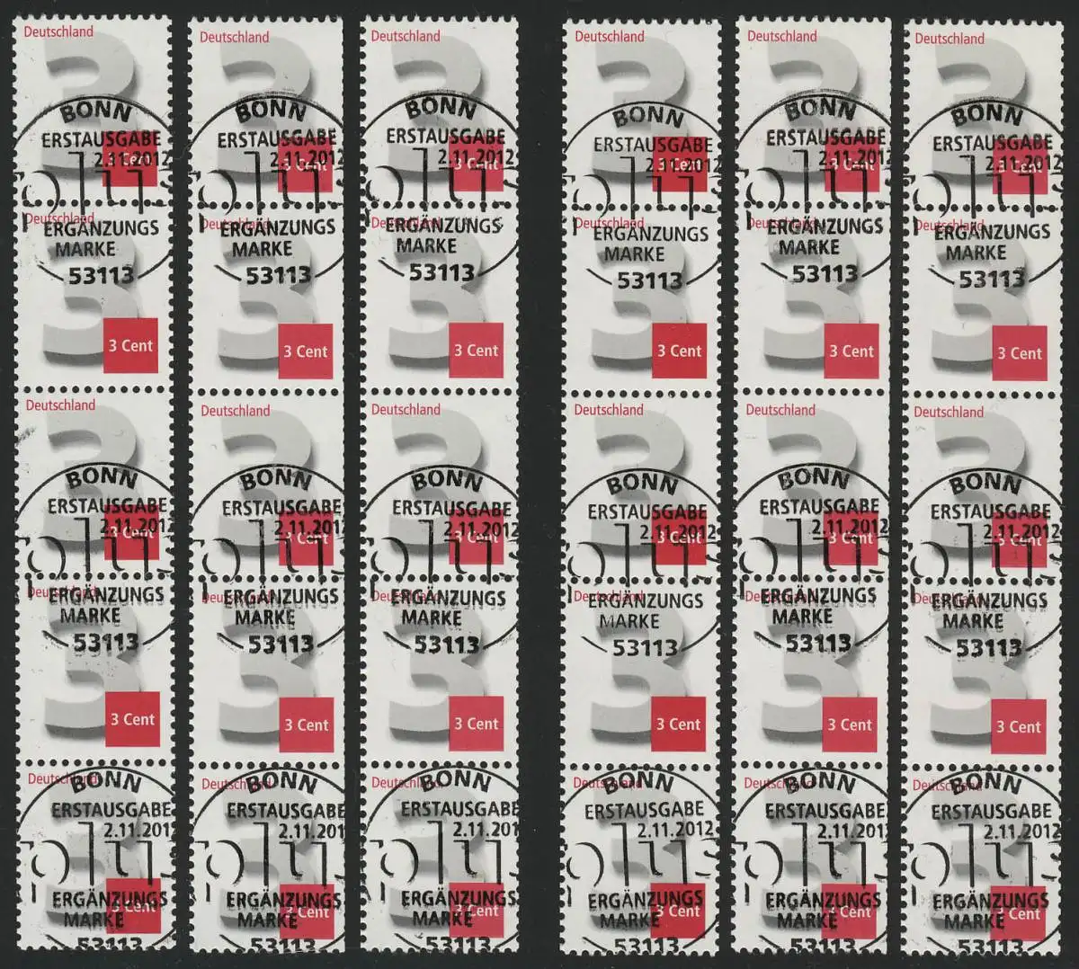 2964 Drei Cent 6 x 5er + Nr. in Type I / II / III gerade/ungerade, ESST Bonn