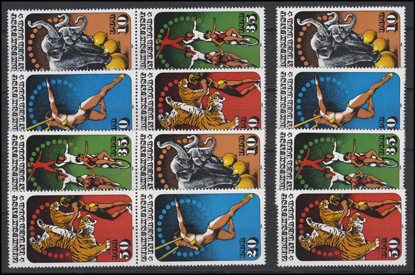 2983-2986 Zirkuskunst in der DDR, 16 Zusammendrucke + 4 Ezm, Set postfrisch