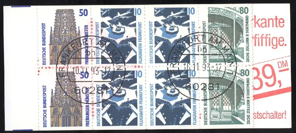 29a MH SWK 1993 mit PLF VII: Strich im Ornament, Feld 4, VS-O Frankfurt 10.11.93