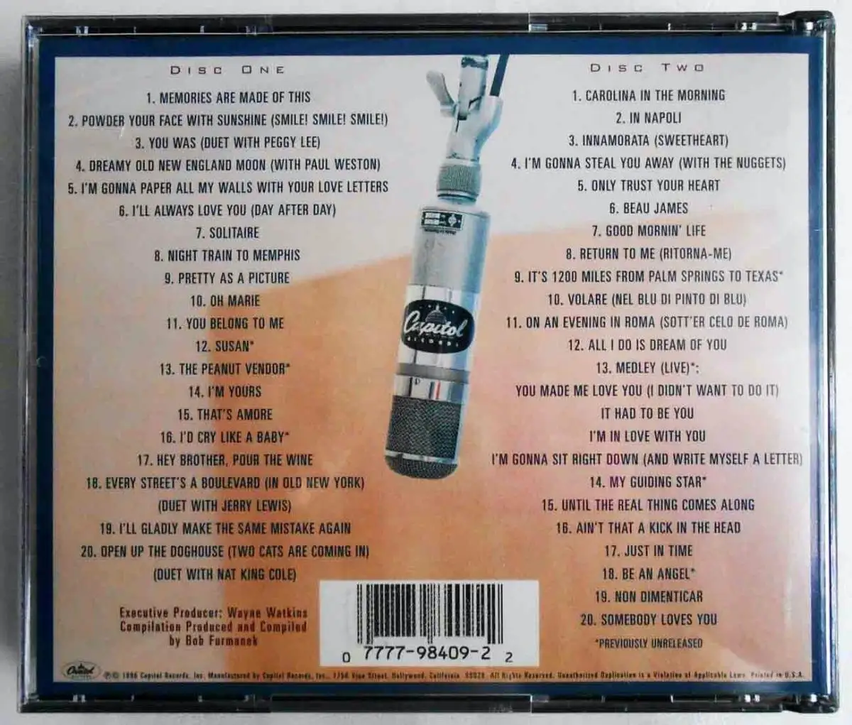 Original 2CD Box, Capitol Records, Originalaufnahmen aus den Capitol Jahren, u.a. Duette mit Jerry Lewis, Peggy Lee, Nuggets, Nat King Cole