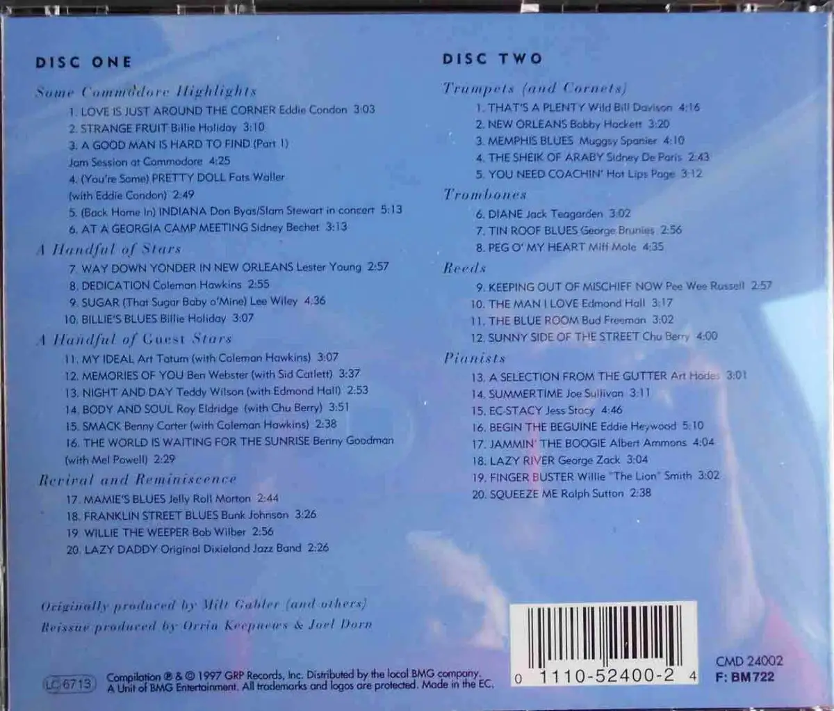 2CD Box,  Commodore Records, 1997,   feat Eddie Condon, Billie Holiday, Fats Waller, Sidney Bechet, Roy Eldridge, Bob Wilber, Bud Freeman usw...