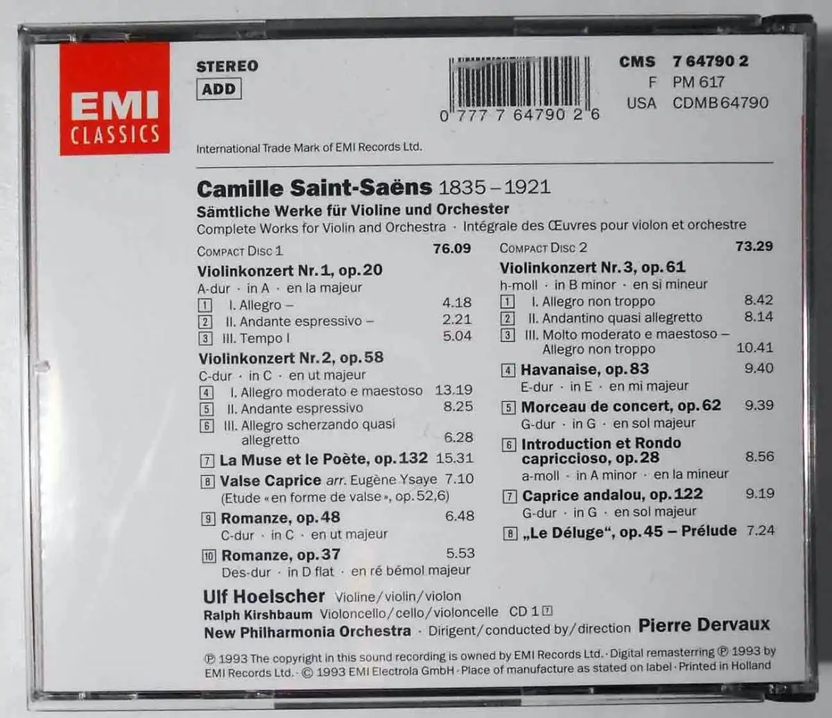 2CD Box, EMI Records, 1993New Philharmonia Orchestra Pierre Dervaux - Ulf Hoelscher (Violine) - Ralph Kirschbaum (Violoncello)
