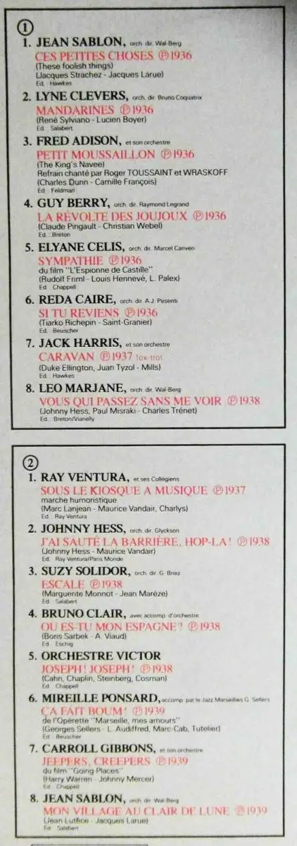 u.a. mit Jean Sablon, André Claveau, Carroll Gibbons, Ray Ventura, Guy Berry usw...