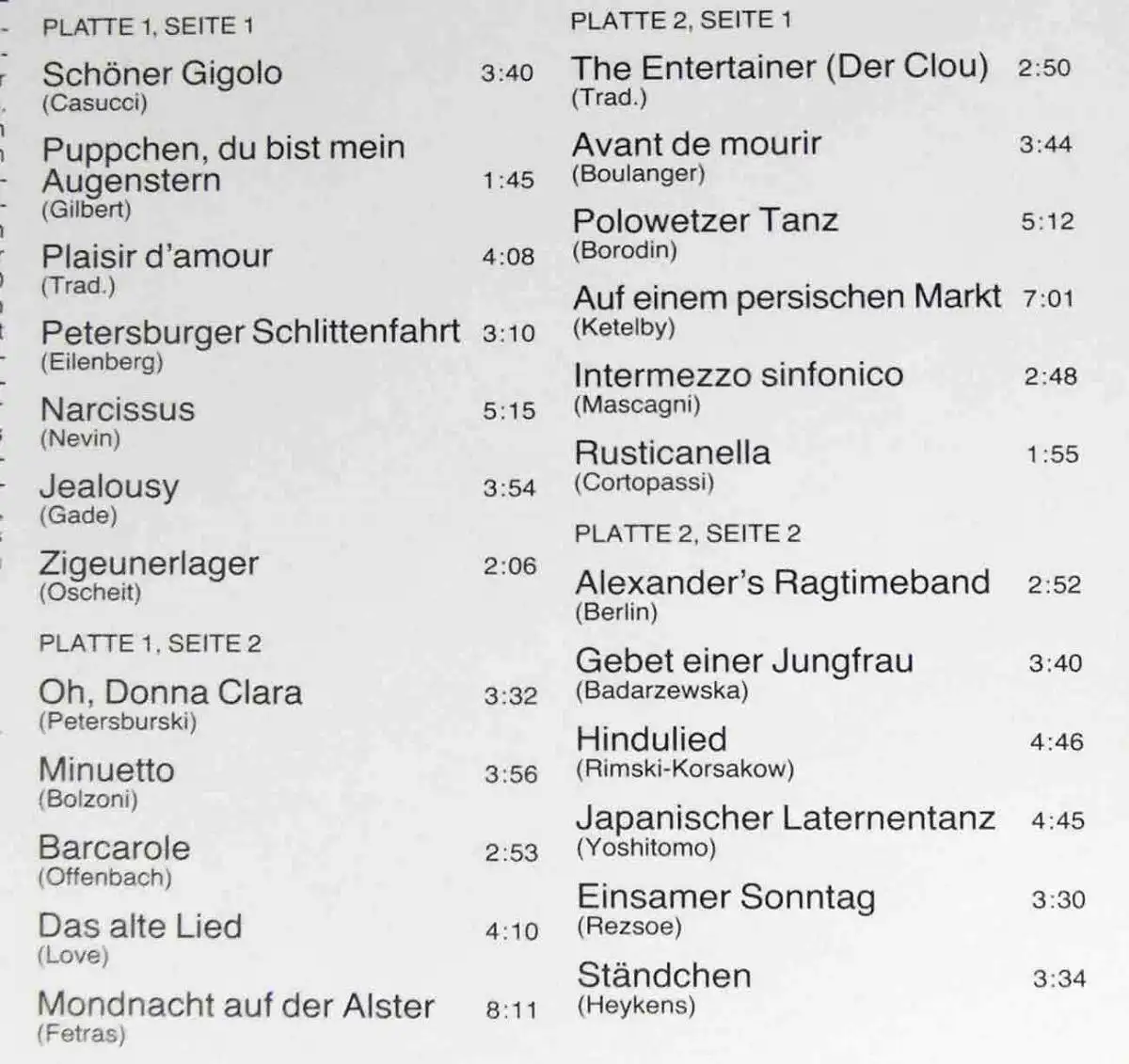 Originalalbum, Acanta Records, dt. Pressung, 1985, Doppel-LP, Coproduktion mit RIAS Berlin, Arrangements: Helmut Brandenburg