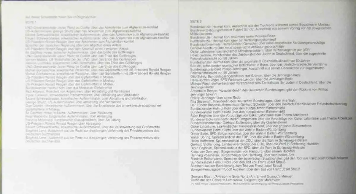 Originalalbum, Philips Records, foc, 1988 - Zeitgeschichtliche Jahres Chronik, Sprecher: Dagmar Berghoff & Werner Veigel (ARD Tagesschau)