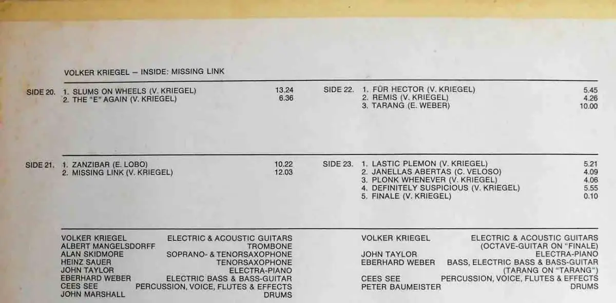 2LP Volker Kriegel: Inside: Missing Link (BASF MPS 33 21431-1) D 1973
