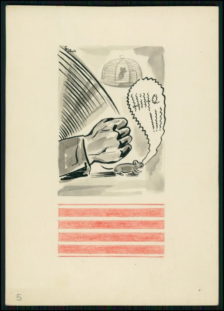 Epoche: 1940er Jahre, satirische Frontillustrationen, typisch für die Zeit des Kriegsalltags.