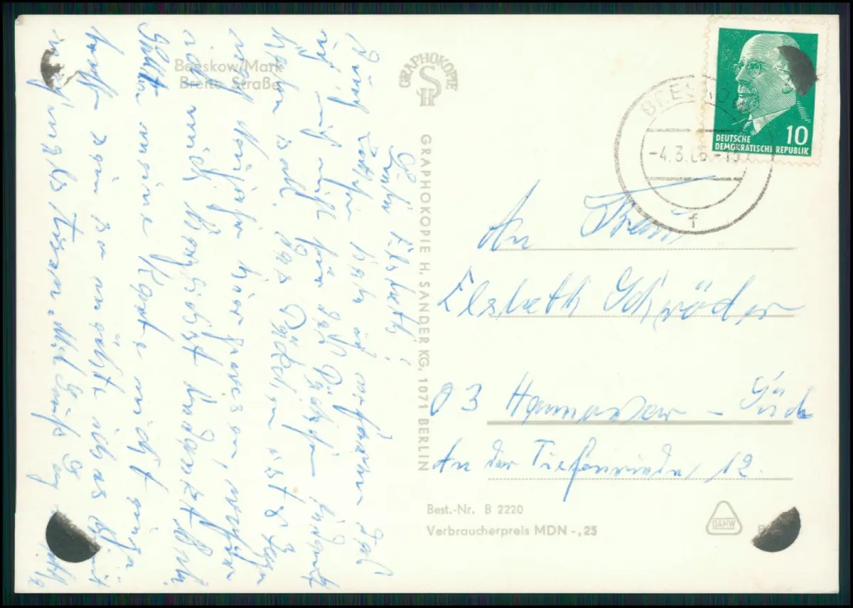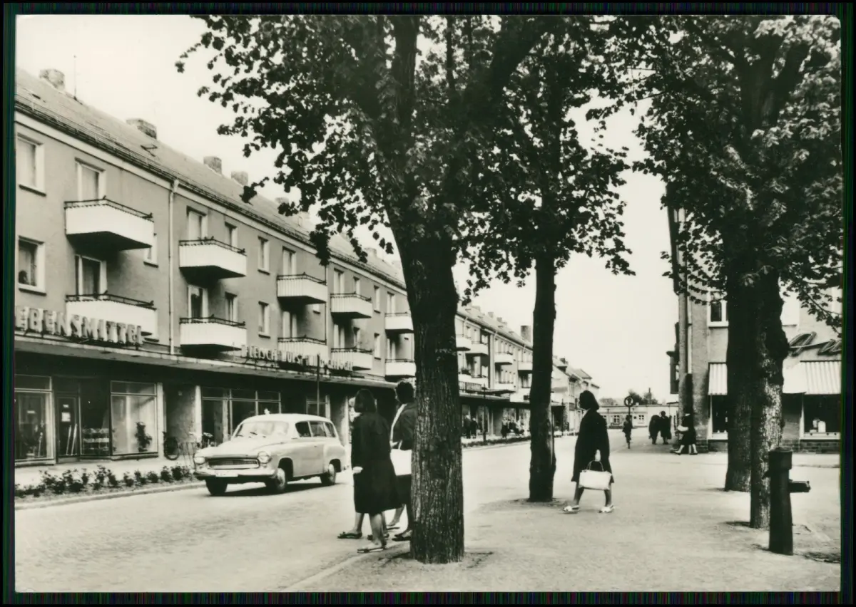 2x Foto AK - Beeskow Breite Straße 1960er Jahre - Straßenansicht Geschäfte Auto