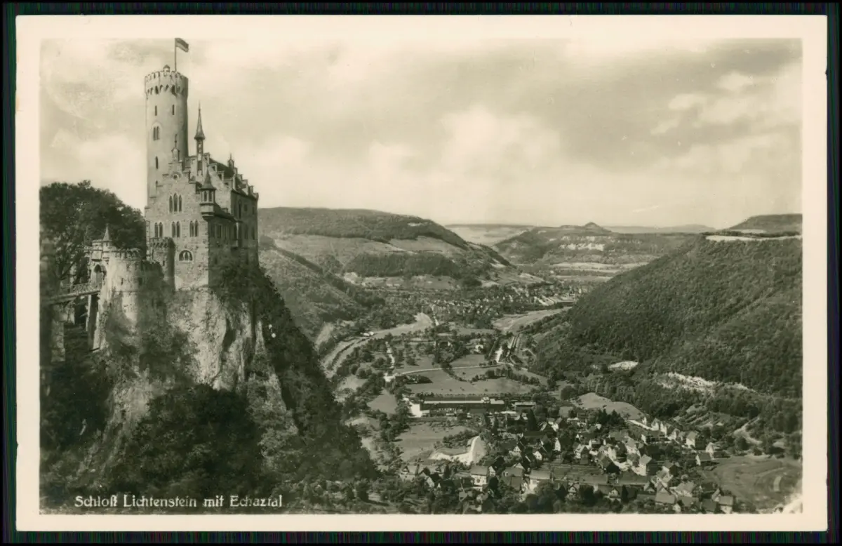 Lichtenstein mit Schloss Lichtenstein über dem Echaztal, eindrucksvoll auf einem steilen Felsplateau der Schwäbischen Alb gelegen.