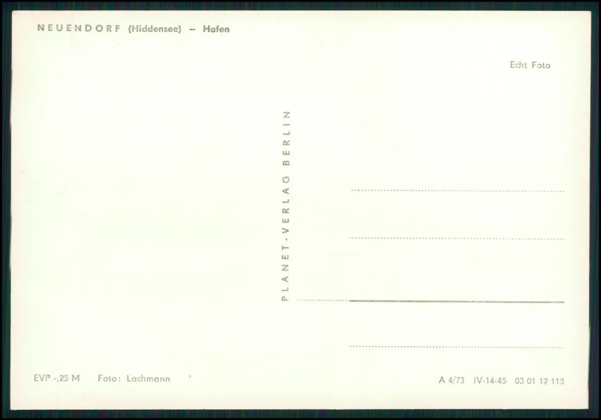 Mit Aufdruck „Neuendorf (Hiddensee) – Hafen“, Verlagshinweis, Preisaufdruck EVP 0,25 M, Echt Foto.