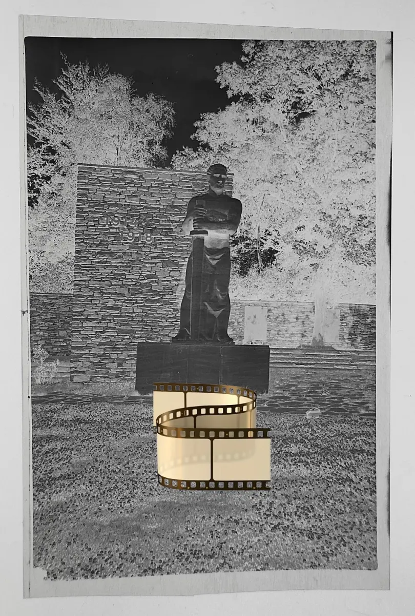 2x Orig. Negativ 9x6cm - Kriegsdenkmal Krieger stützt sich Schwert Mauer 1914-18