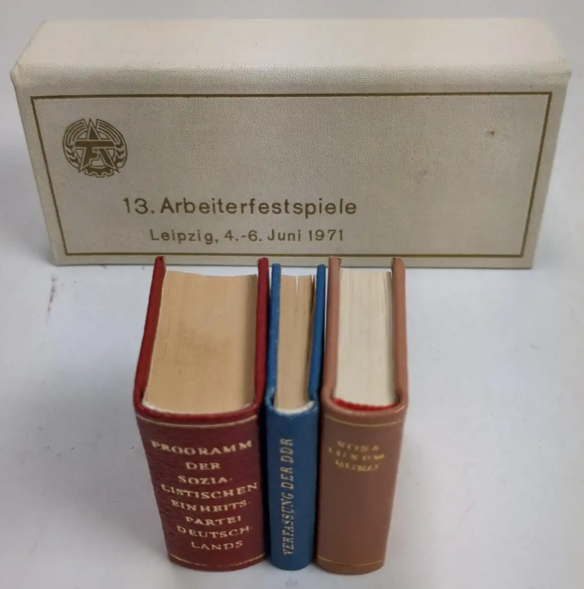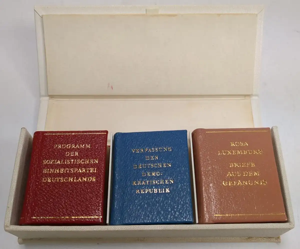 Dietz, Berlin, 1971. 628/165/309 Seiten 3 Minibücher in Leder (5 x 4 cm) in Kassette (6 x 15 cm)