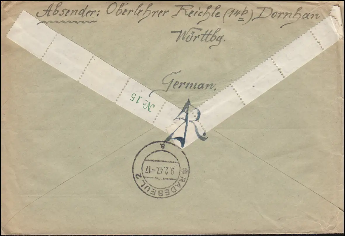 3 Pf ZW Wappen Zwischenstegpaar mit Zusatzfrankatur MiF R-Bf. DORNHAN 27.1.1947