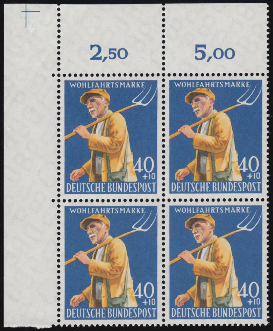 300 Landwirtschaft 40+10 Pf Bauer ** Eck-Vbl o.l. Zähnung 1-dg +