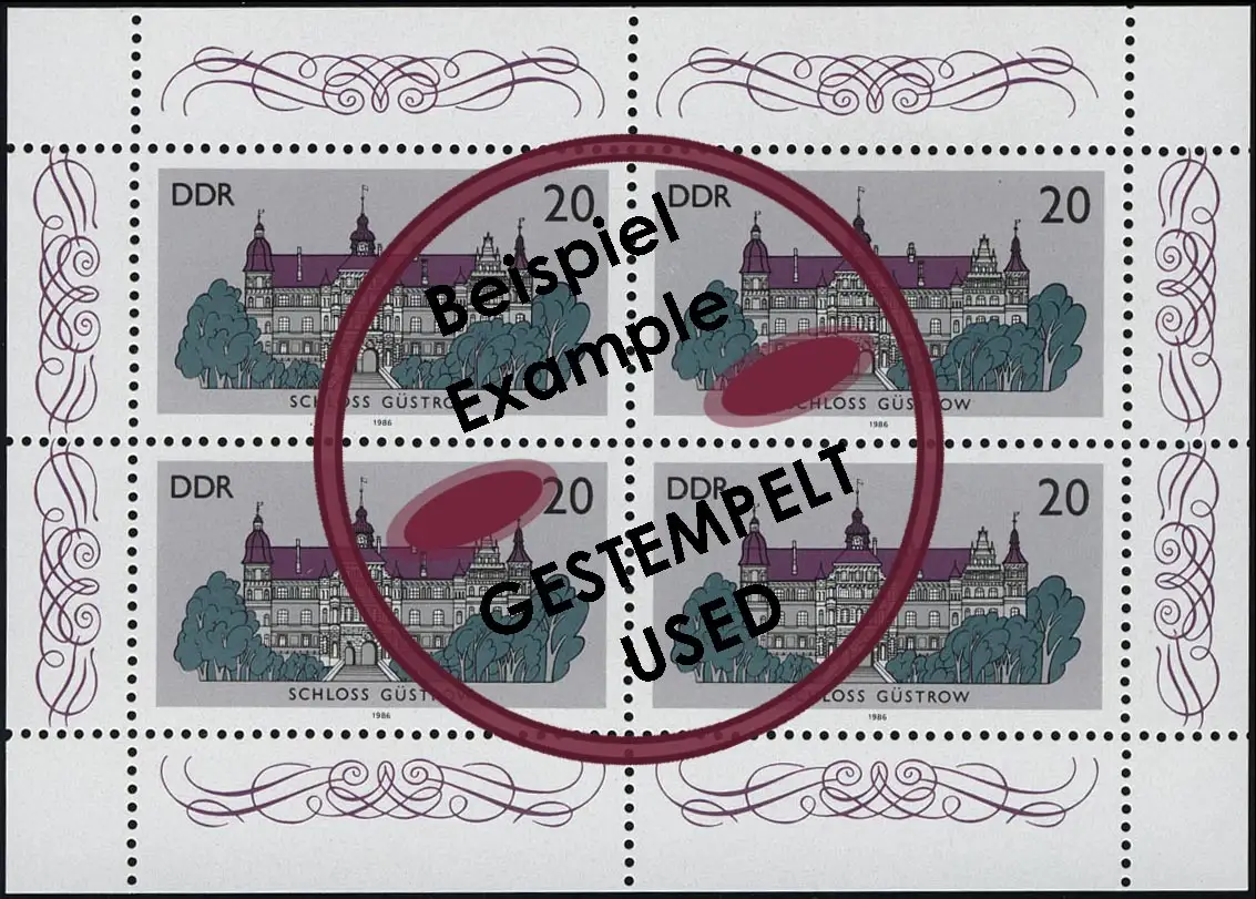 3033 Schlösser-Kleinbogen Güstrow 4x 20 Pf 1986, Tagesstempel O