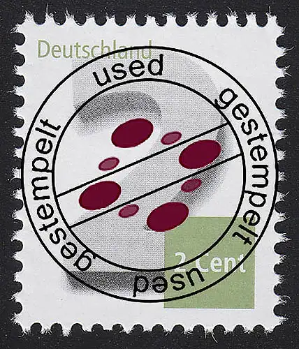 3042I Ergänzungsmarke 2 Cent, nassklebend MIT SAD (glänzend, dunkel), O
