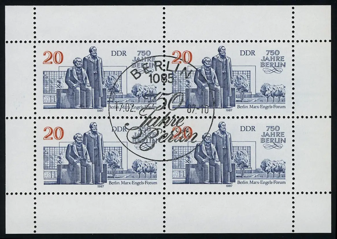 3077 Marx-Engels-Forum-Kleinbogen Berlin 4x 20 Pf 1987, ESSt Berlin